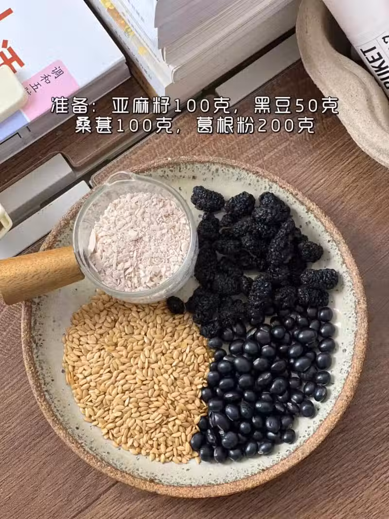 亞麻籽100克|黑豆50克|桑葚100克|葛根粉200克