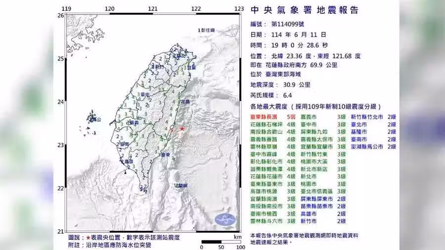 國家警報大響!台東外海19:00「6.4強震」 全台震度曝光