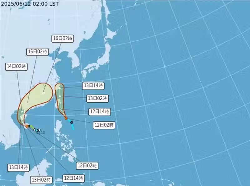 「台灣颱風論壇|天氣特急」指出,在太平洋高氣壓穩定推送下,94W移動速度很快,預計在今日下午進入台灣東部海域,並在夜晚至周五(13日)清晨間,通過台北、宜蘭、花蓮間,目前有機會登陸,也有可能僅是擦邊而過。