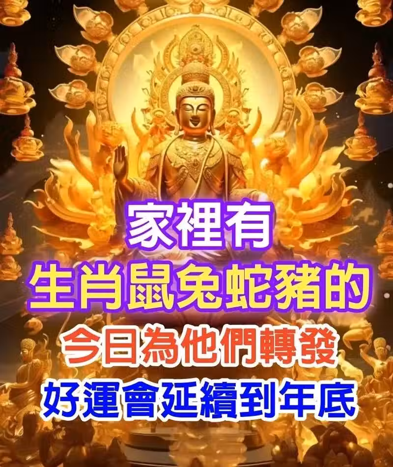 家裡有生肖「鼠兔蛇豬」的,今日為他們轉發,好運會延續到年底!