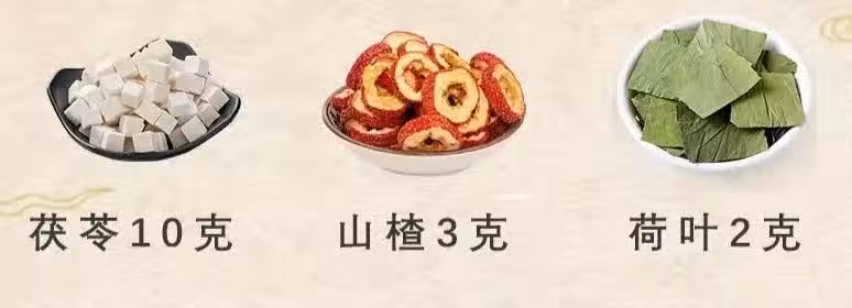 適合:久坐水腫、小腹墜脹、肉食吃多消化差。亮點:山楂消肉食積滯,荷葉利水消腫,茯苓健脾祛濕。三者各5g煮15分鐘代茶飲,適合夏天。注意:脾胃虛寒者(吃涼易腹瀉)不加荷葉,可換成陳皮。