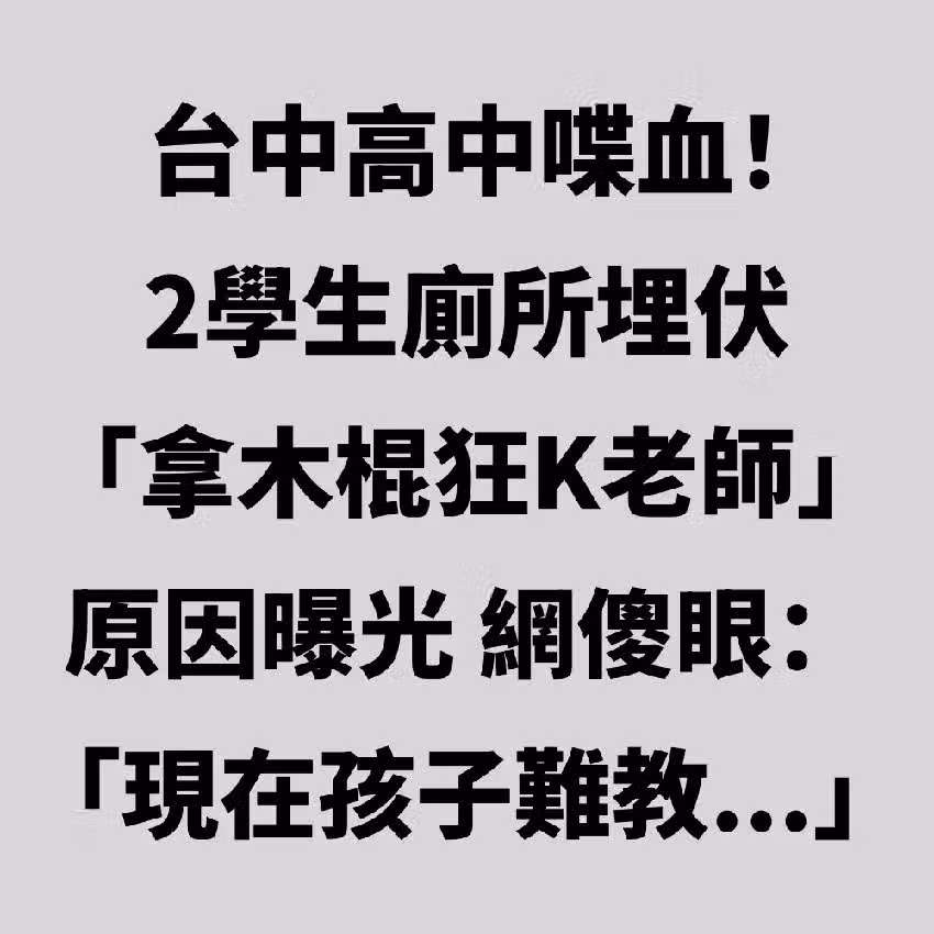 台中高中喋血!2學生廁所埋伏「拿木棍狂K老師」原因曝光 網傻眼:「現在孩子難教...」