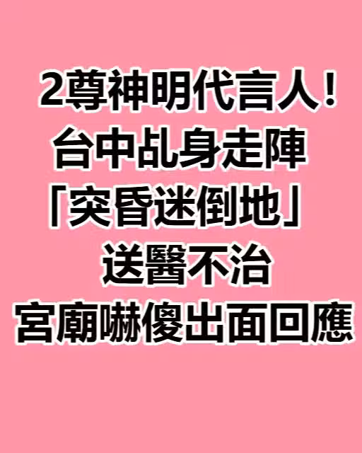 2尊神明代言人!台中乩身走陣「突昏迷倒地」送醫不治 宮廟嚇傻出面回應