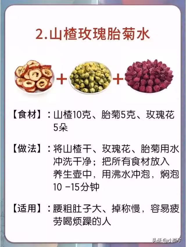 ✅ 食材:山楂10g+胎菊5g+玫瑰5朵。