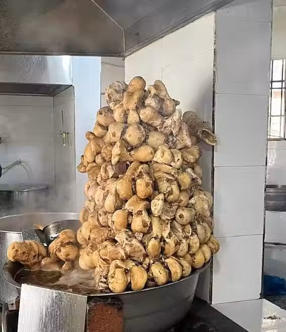 更嚇人的是,那些骨頭堆得像一座小山,鍋里的湯水渾濁不堪,實在太噁心了。