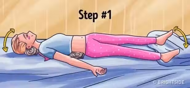 平躺在床上放鬆你的身體,雙腿屈膝靠近腹部,雙手抱住雙膝。雙腿靠近胸口,腳後跟貼近臀部,腳尖向外。