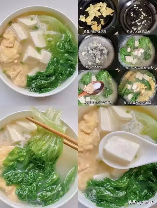 食材:生菜1棵+嫩豆腐1塊+雞蛋1個。