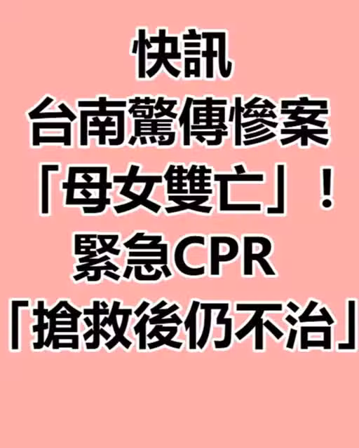 快訊/台南驚傳慘案「母女雙亡」!緊急CPR「搶救後仍不治」