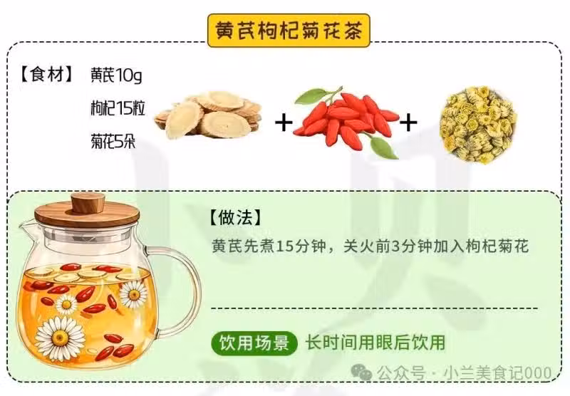 做法:黃芪先煮15分鐘,關火前3分鐘加入枸杞菊花。