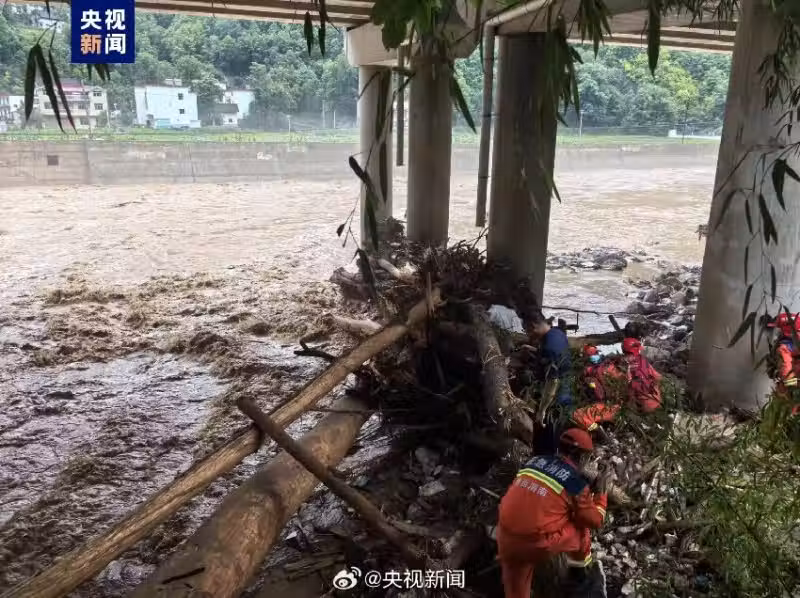 陝西省委宣傳部20日通報,在19日20時40分左右,陝西省商洛市柞水縣發生暴雨山洪,造成丹寧高速公路水陽段山陽方向K46+200處嚴坪村二號橋局部崩塌,根據現場照片,橋身毀損嚴重,其中一大段橋身更直接掉進河流當中。
