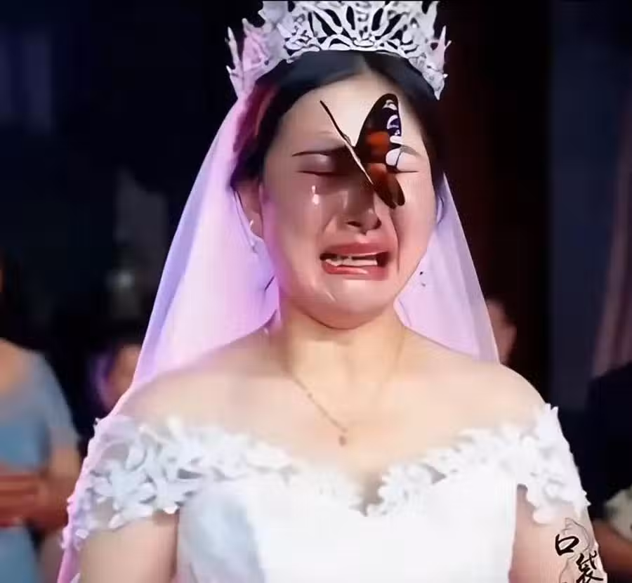 婚禮上,「一隻胡蝶死守新娘」遲遲不走「新娘愣3秒」當場淚崩顫喊:今天他的真來了