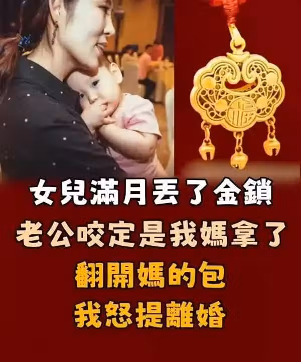 女兒滿月丟了金鎖,老公咬定是我媽拿了,翻開媽的包 我怒提離婚!