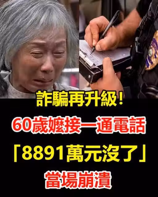 詐騙再升級!60歲嬤接一通電話「8891萬元沒了」當場崩潰~