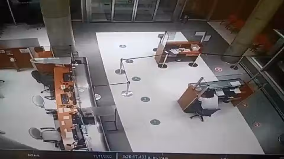 ..不過令人不寒而慄的是,保全一直都在獨自和空氣對話,大廳中從始至終也只有他一人...