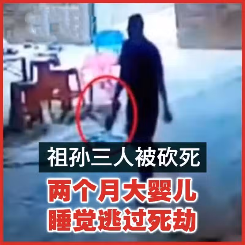 祖孫三代被鄰居砍死 兩個月大嬰兒 睡覺逃過死劫