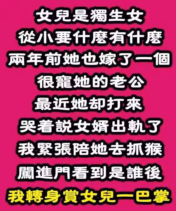 女兒是獨生女,從小要什麼有什麼,2年前她也嫁了一個「很寵她的好老公」 最近她卻打來「哭著說女婿出軌了」 我緊張陪她去抓猴「闖進門看到是誰後」我轉身賞女兒一巴掌