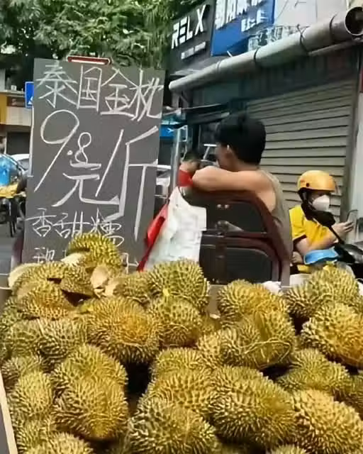 最近,在一次街頭購物中,我被吸引住了:「泰國金枕榴槤,9.8元一斤,甜香糯,現切。