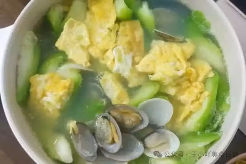 食材:絲瓜,雞蛋,貽貝,食用油,鹽
