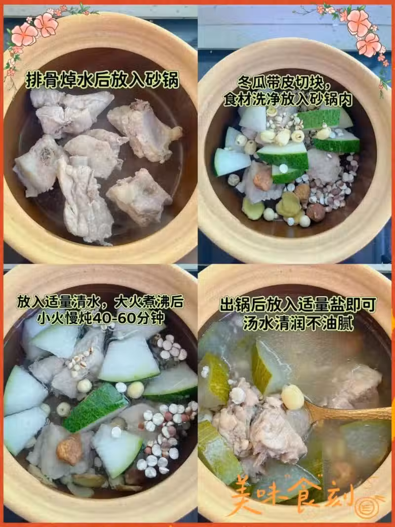 1. 冬瓜帶著皮煮,但脾胃虛寒的人可以去皮。