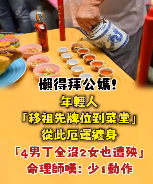 懶得拜公媽!年輕人「移祖先牌位到菜堂」從此厄運纏身 「4男丁全沒2女也遭殃...」命理師嘆:少1動作