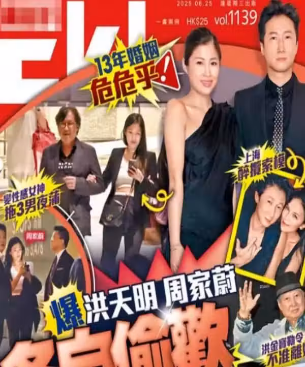 「武打巨星」洪金寶的大兒子洪天明和港姐周家蔚結婚13年,人前恩愛的他們,港媒近日拍到周家蔚撇下兩個兒子,和三名男子現身尖沙咀的高檔會所,大玩「1後3王」到凌晨一點才紅著臉離開。