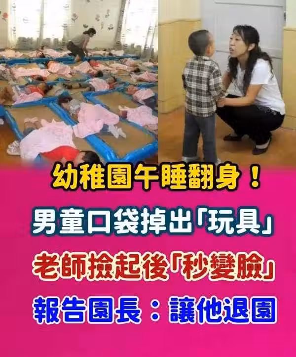 幼稚園午睡翻身!男童口袋掉出「玩具」,老師撿起後「秒變臉」報告園長:讓他退園