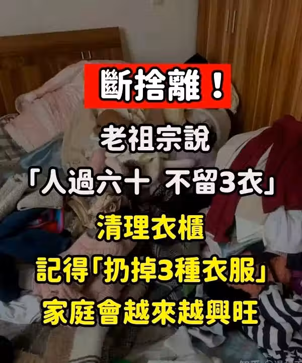 斷舍離!老祖宗說「人過六十,不留3衣...」 清理衣櫃記得「扔掉3種衣服」家庭會越來越興旺!