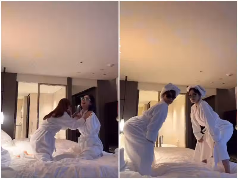 想不到回到家中後,母女倆依舊停不下來,換上碎花睡褲、戴起太陽眼鏡大跳特跳,還進廚房穿橡膠手套接力熱舞,整體造型搞笑又接地氣,洋溢滿滿台式風格,也展現出母女間深厚的感情。