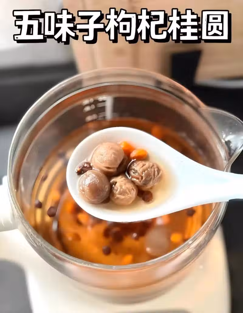 夏天熱得要命,不知道怎麼調養身體,那就試試這個五味龍眼茶吧。五味子天然酸味生津止渴,龍眼肉自帶甘甜補益心脾,夏夜輾轉難眠的朋友,更不能錯過。煮出茶湯是寶石紅的湯色,龍眼肉燉後像琥珀凍,喝起來先酸後甜,回甘綿長。