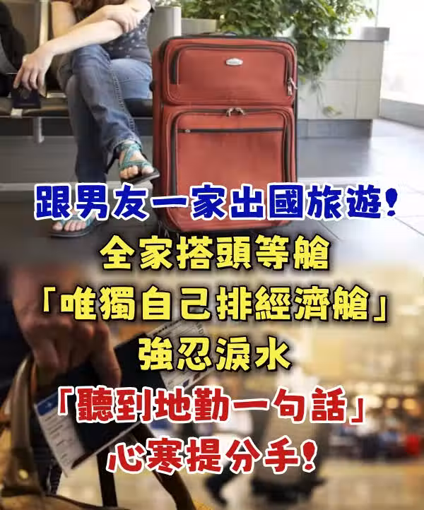 跟男友一家出國旅遊!全家搭頭等艙「唯獨自己排經濟艙」 強忍淚水「聽到地勤一句話」心寒提分手~