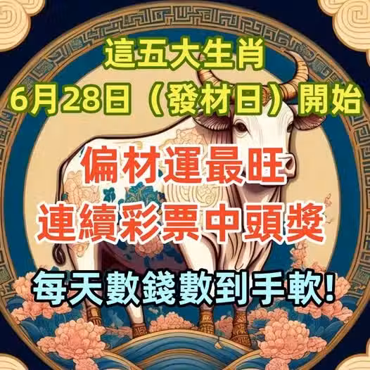 這五大生肖,6月28日(發材日)開始偏材運最旺,連續彩票中頭獎,每天數錢數到手軟