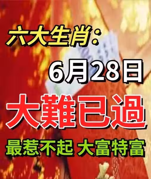 六大生肖:6月28日大難已過(最惹不起)大富特富~