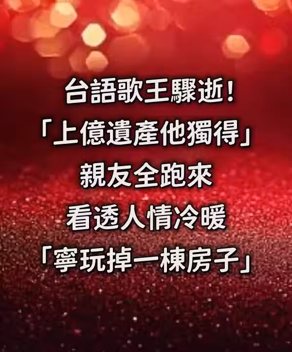台語歌王驟逝!「上億遺產他獨得」親友全跑來 看透人情冷暖「寧玩掉一棟房子...」