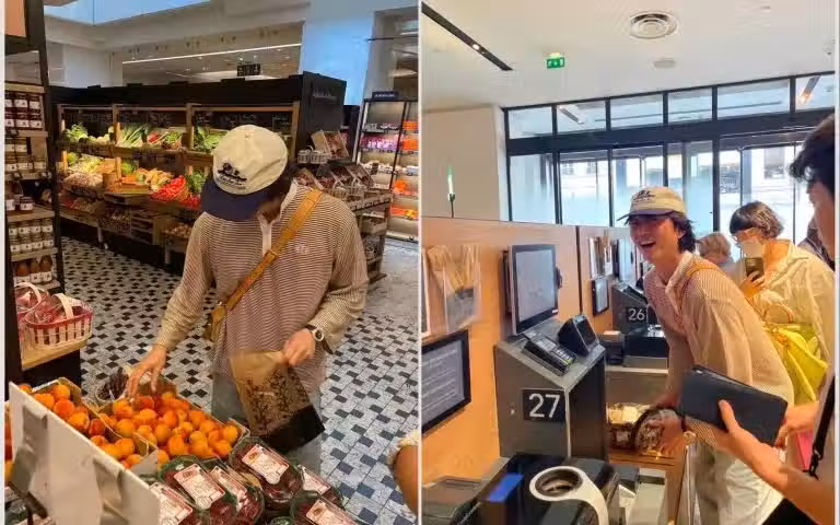 孔劉巴黎超市自助結帳太萌了!網友狂贊:「這畫面可以看一百次」