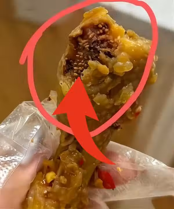 回到家後,兒子迫不及待地拿起雞腳咬了一口,卻發現雞腳內部有一些不明的顆粒物。