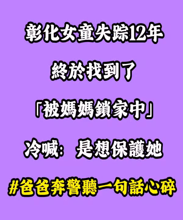 彰化女童失蹤12年!終於找到「被媽媽鎖家中」冷喊:是想保護她 #爸爸奔警局聽一句話心碎