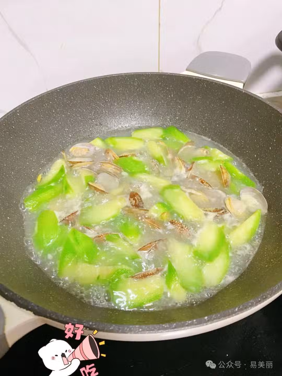1.蛤蜊洗凈,絲瓜刮掉皮切滾刀塊。
