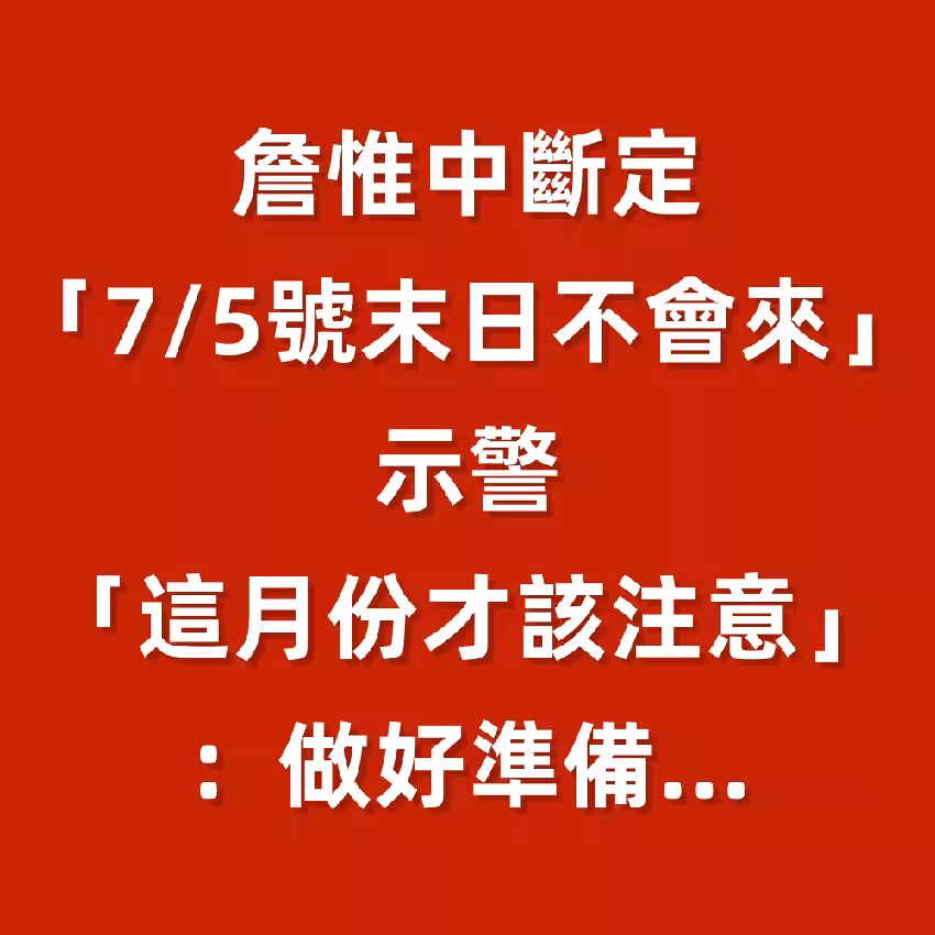 詹惟中斷定「7/5號末日不會來」!示警「這月份才該注意」:做好準備...