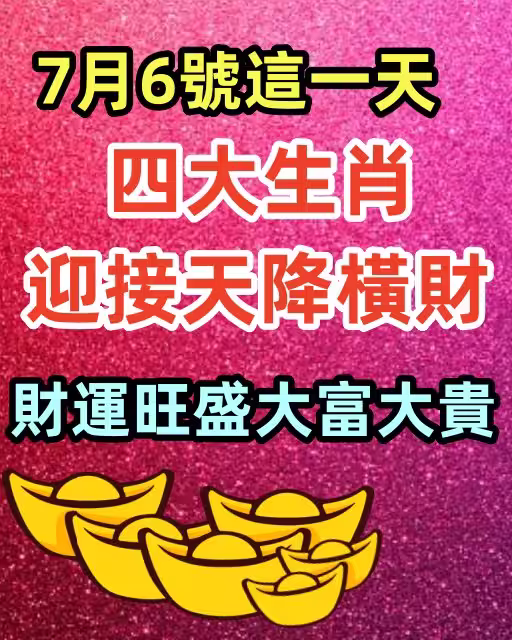 7月6號這一天,四大生肖迎接天降橫財,財運旺盛大富大貴!