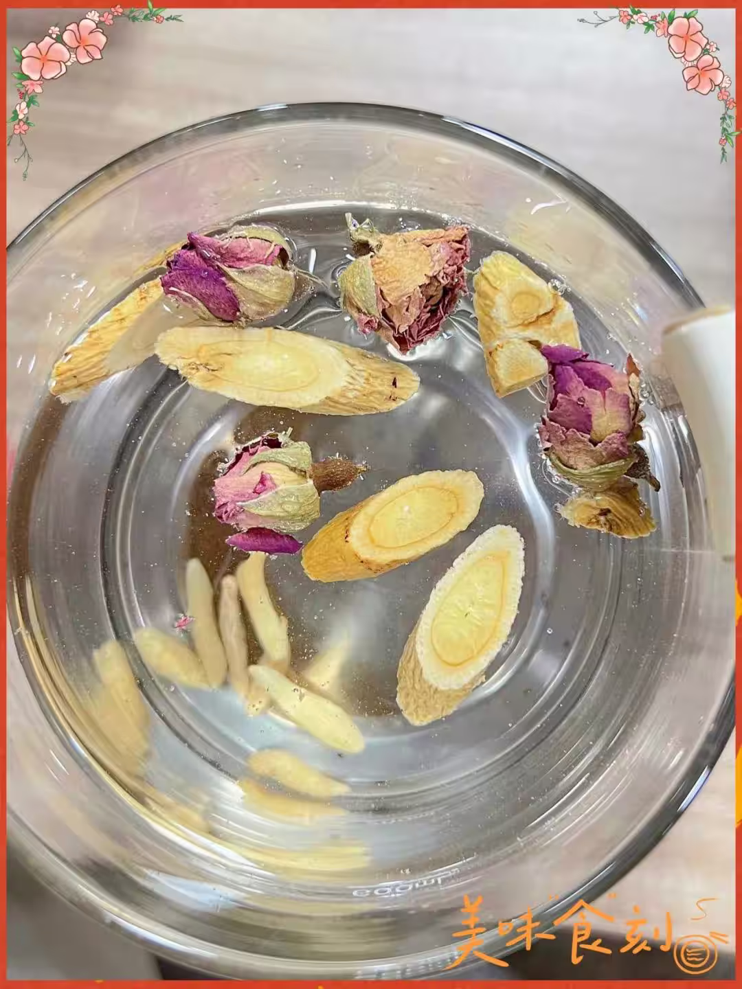 1. 玫瑰花用水把表面沖乾淨,黃芪用流水漂洗
