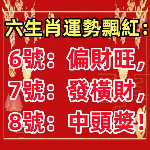 六大生肖運勢飄紅:7月6號偏財旺,7號發橫財,8號中頭獎!