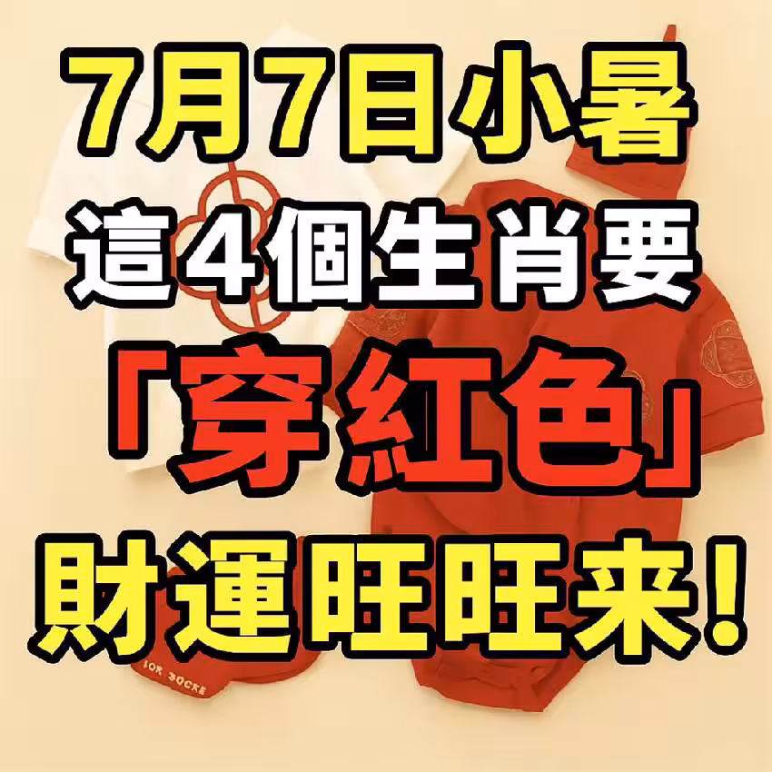 🔴 7月7日小暑,這4個生肖一定要「穿紅色」,才能財運旺旺來,好運到明年!🔥小暑節氣炎熱,但紅色不僅代表熱情,更象徵財氣、貴氣、轉運的開端。