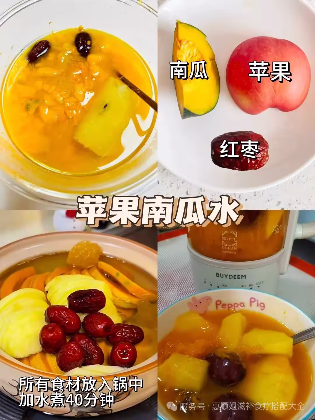 食材:蘋果1個、紅棗2顆、南瓜10克