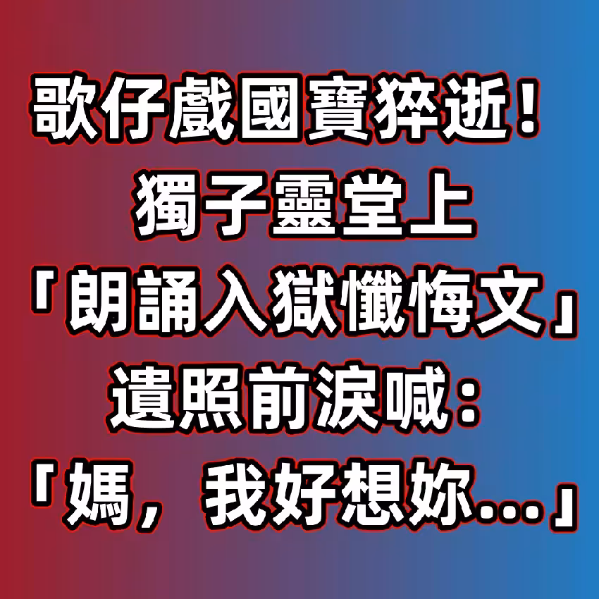 歌仔戲國寶猝逝!獨子靈堂上「朗誦入獄懺悔文...」 遺照前淚喊:「媽,我好想你」