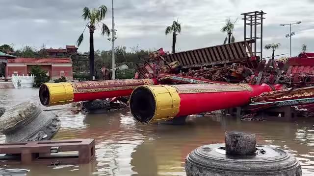 事實上,今年初南鯤鯓代天府抽出的國運簽,全文為「一重江水一重山,誰知此去路又難,任他改求終不過,是非終久未得安」,簽注指出「屋漏更遭連夜雨,行船又遇打頭風」,當時廟方表示為下下籤,外界解讀政治、經濟會出現動盪,如今看來牌樓倒塌似乎早有警示。
