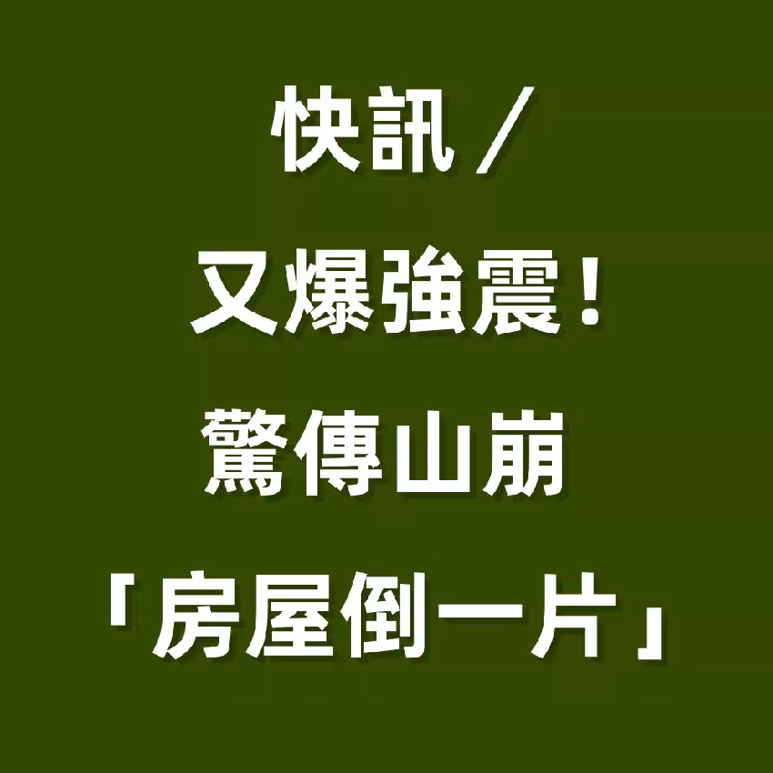 快訊/又爆強震!驚傳山崩「房屋倒一片」