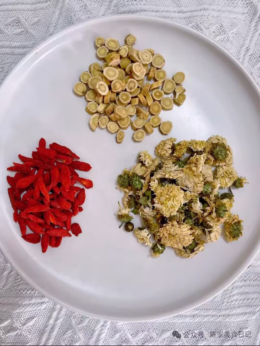 黃芪 8 克、枸杞 12 粒、菊花 5 克、冰糖適量