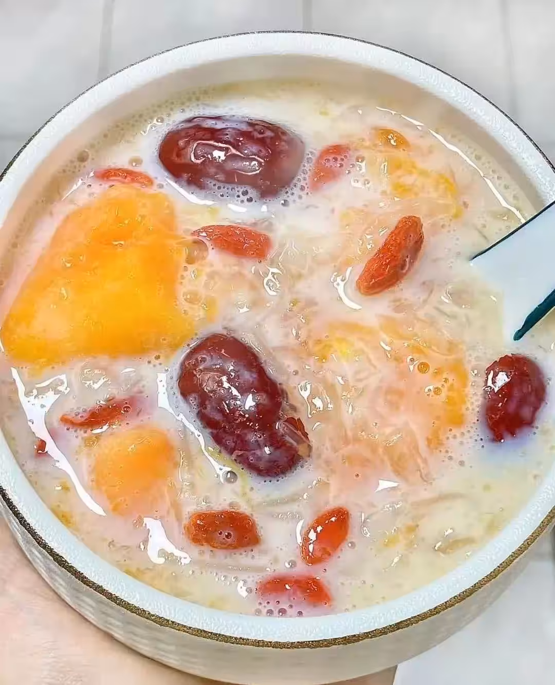 皮膚發黃、熬夜睡不著的姐妹們趕緊看過來!這碗木瓜銀耳羹太適合你們了,特別好喝,香甜又軟糯,每一口都熱乎乎的,吃完心裡特別暖,滿滿的膠質,還能幫助你美容養顏。更重要的是能幫你整個人放鬆下來,焦慮感少了,睡意自然就來了。