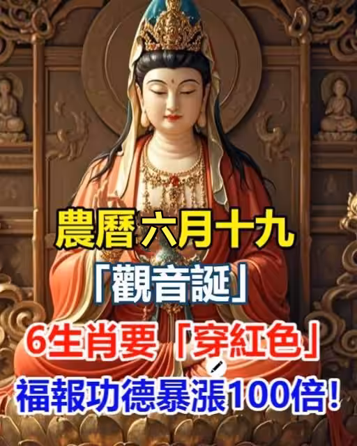 一年一度的觀音聖誕又到了,這是祈求平安、求財轉運的極佳時機!2025年正逢氣運流轉,若在這天穿對顏色、誠心祈福,福報將乘倍回來,財運與貴人同時上門!尤其這6個生肖,只要穿上「紅色」,功德福氣直接翻倍,整年運勢扶搖直上!