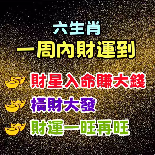 六生肖:一周內財運到,吃香喝辣,天天把錢賺